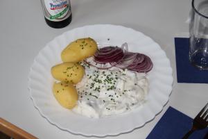 Zum traditionellen Fischessen trafen sich die Teilnehmerinnen vom Marktschießen am 6. September im Pfarrsaal. Statt Steckerlfisch gab es in diesem Jahr Matjes nach Hausfrauenart mit Pellkartoffeln und dazu das Freibier, welches der