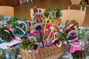 stand am Mittwoch, 14. März, auf dem Programm. Bereits um 09.00 Uhr begannen die Frauen im Pfarrsaal mit dem Binden der Palmbüschel. Annemarie Reck zeigte den Teilnehmerinnen, wie man “Palmkronen” bastelt.