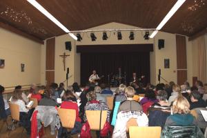 war im Pfarrsaal angesagt. Unter kompetenter Führung von Frau Klein gingen wir durch die angenehme Meditation mit Klangschalen. Auf wundersame Art und Weise spürten wir Schwingungen durch unseren Körper fließen und wurden von innen gereinigt.