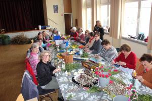 war angesagt. Bereits ab 9:00 Uhr morgens fanden sich etliche Damen im Pfarrsaal ein um farbenfrohe Palmbüschel zu binden.