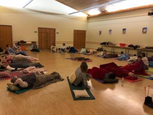 konnten wir so richtig zum "Stress runterfahren" genießen. Nach Mittagessen und Kaffee&Kuchen nahmen wir an der Abschlussmeditation mit schönen Liedern und inspirierenden Bildern teil.