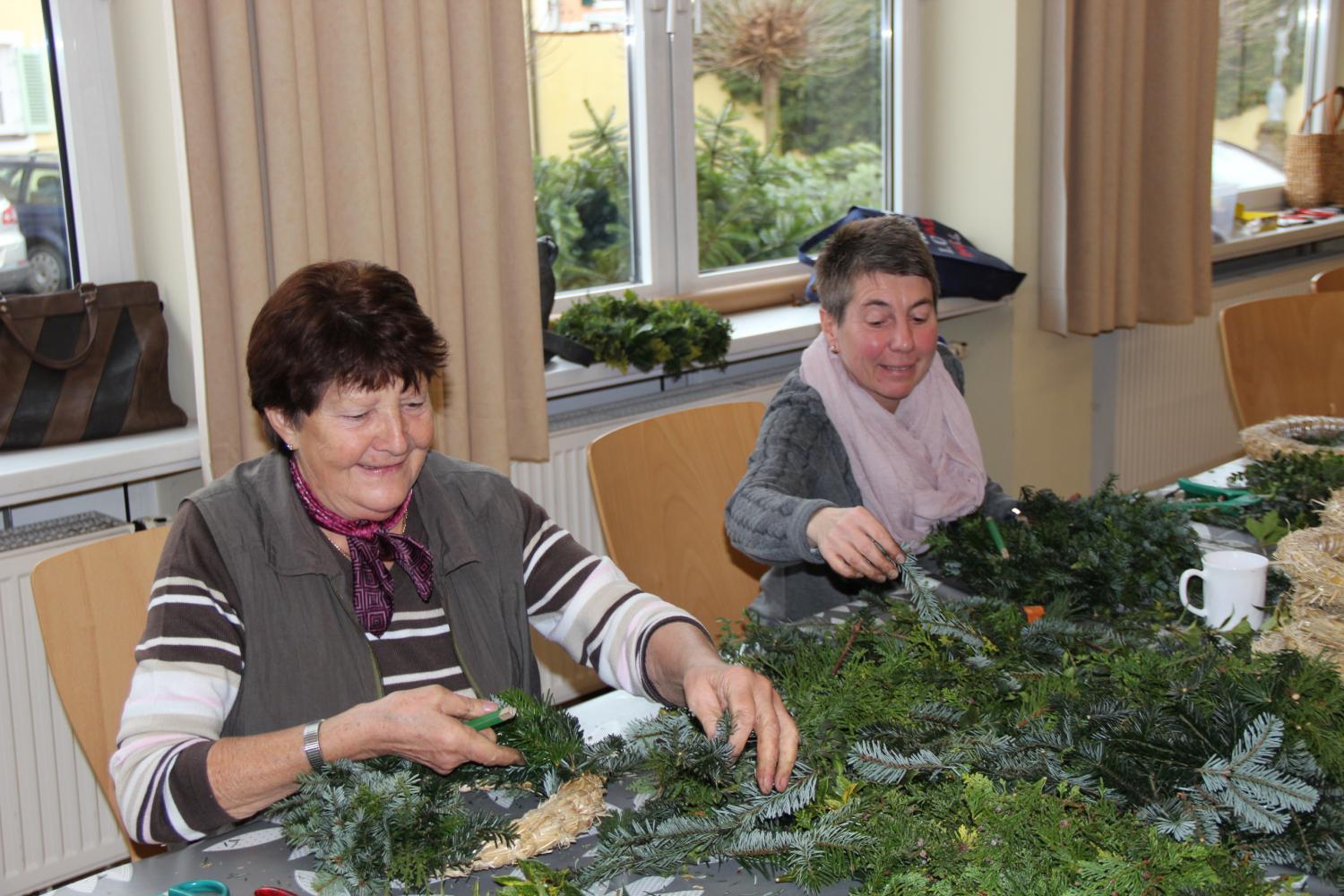 Adventskranzbinden im Pfarrsaal
