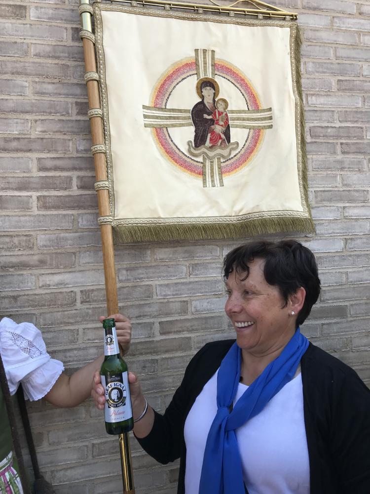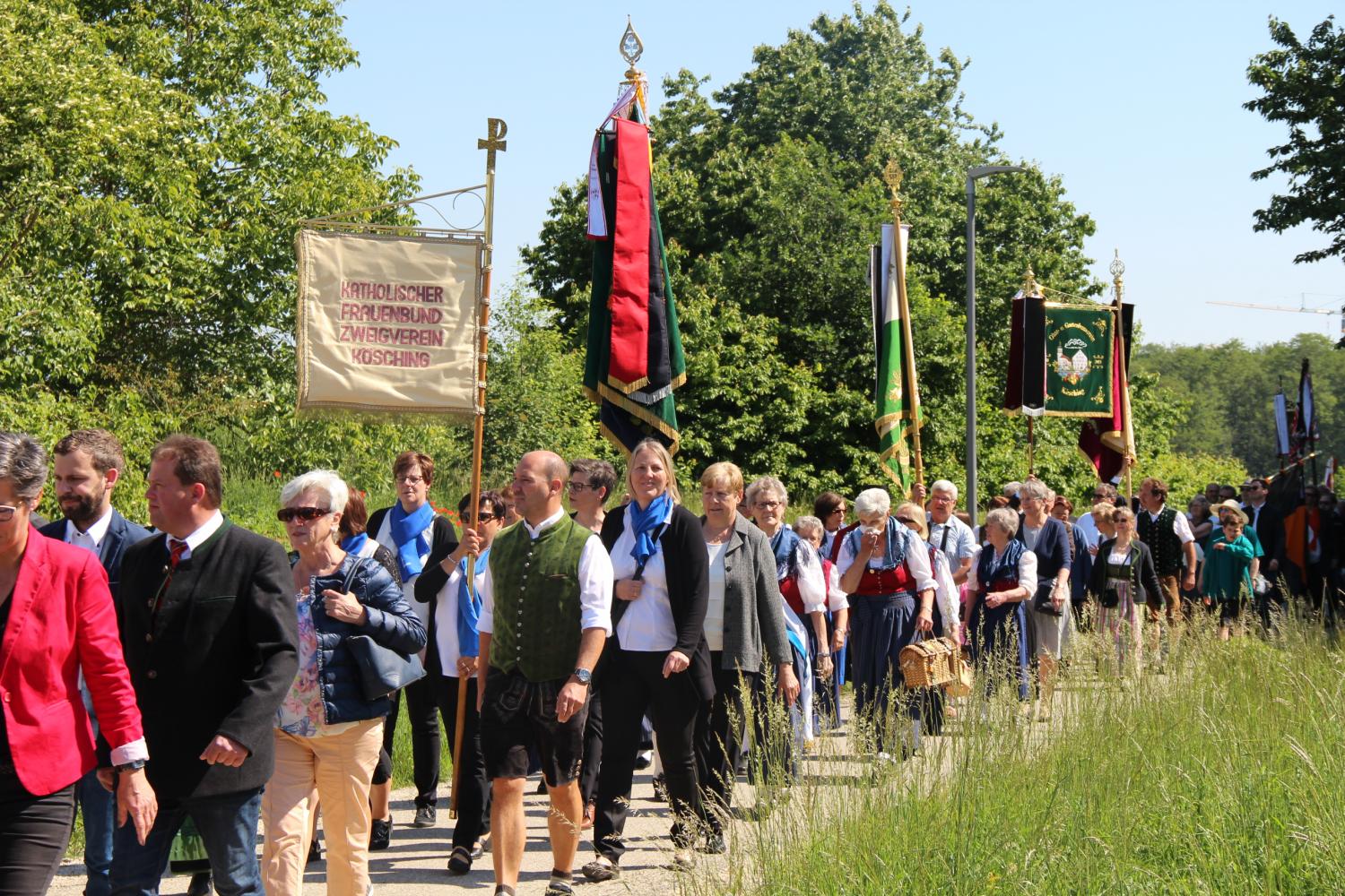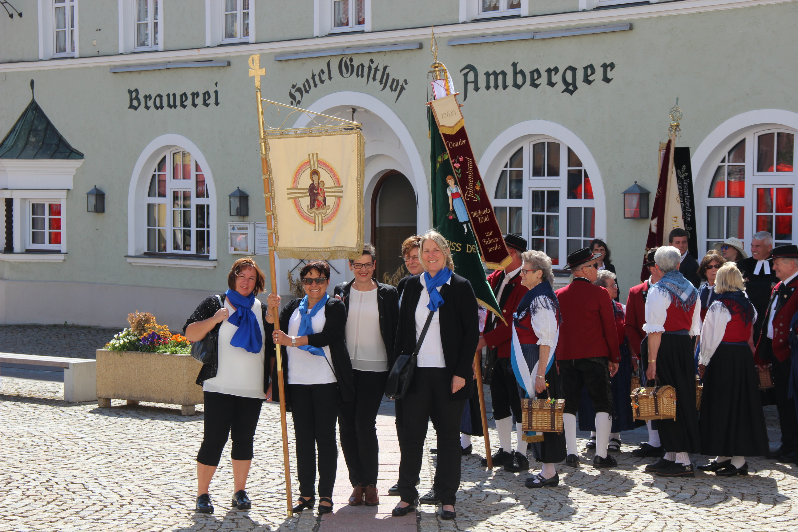 Der Frauenbund hat sich am Pfingstmontag dem Festzug vom Marktplatz zum neuen evangelischen Gemeindezentrum angeschlossen. Der Festgottesdienst dauerte 2,5 Stunden und