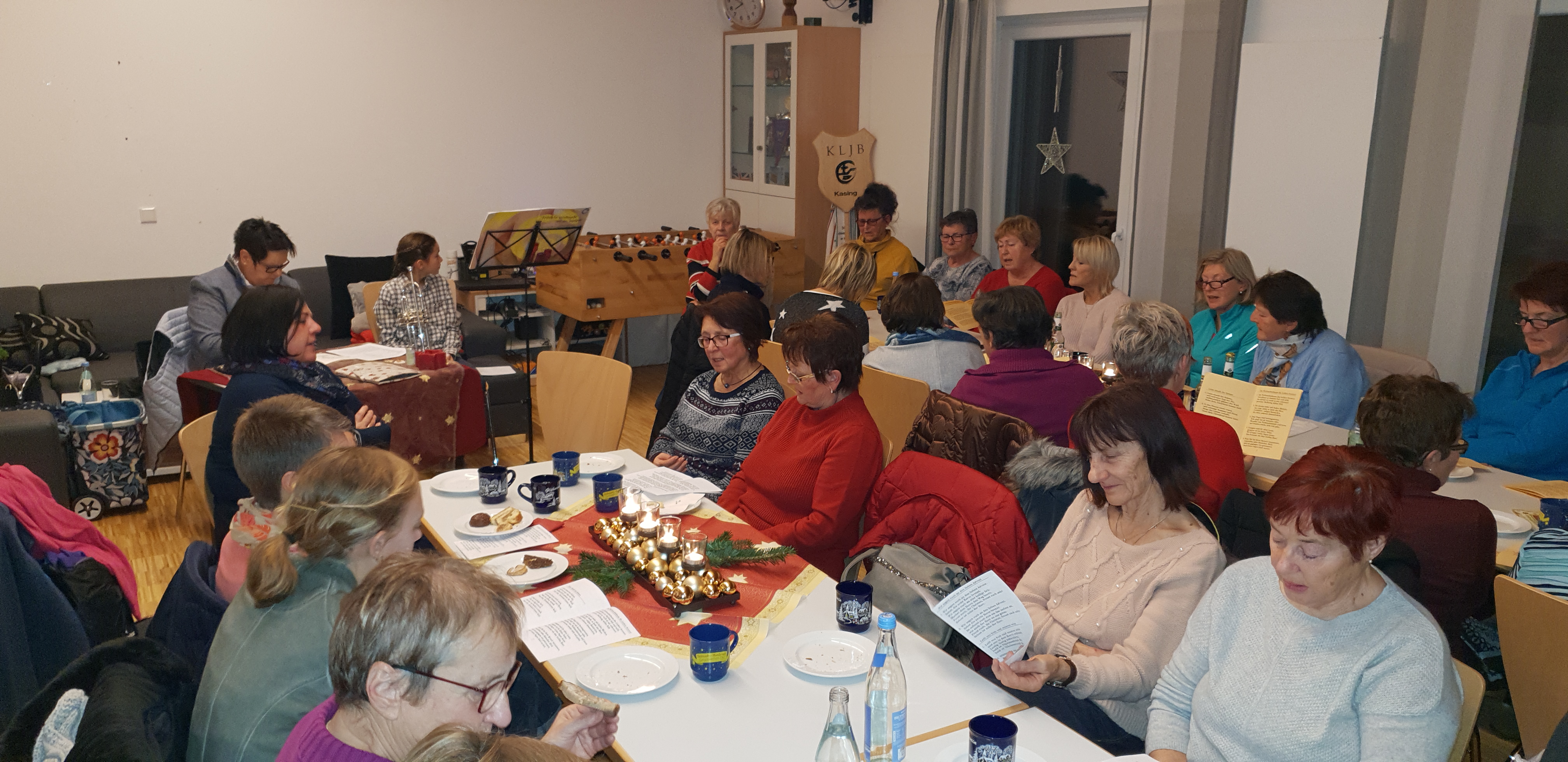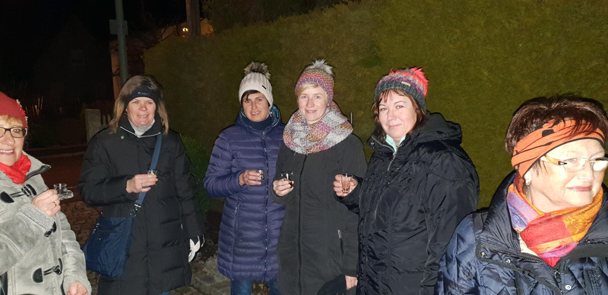 Einen adventlichen Abend verbrachten 45 Frauen von uns im Kasinger Pfarrheim. Nach dem einstündigen Fussmarsch nach Kasing bekamen wir am " Haus des Kometen" der Familie Binder einen Kometen-Schnaps.