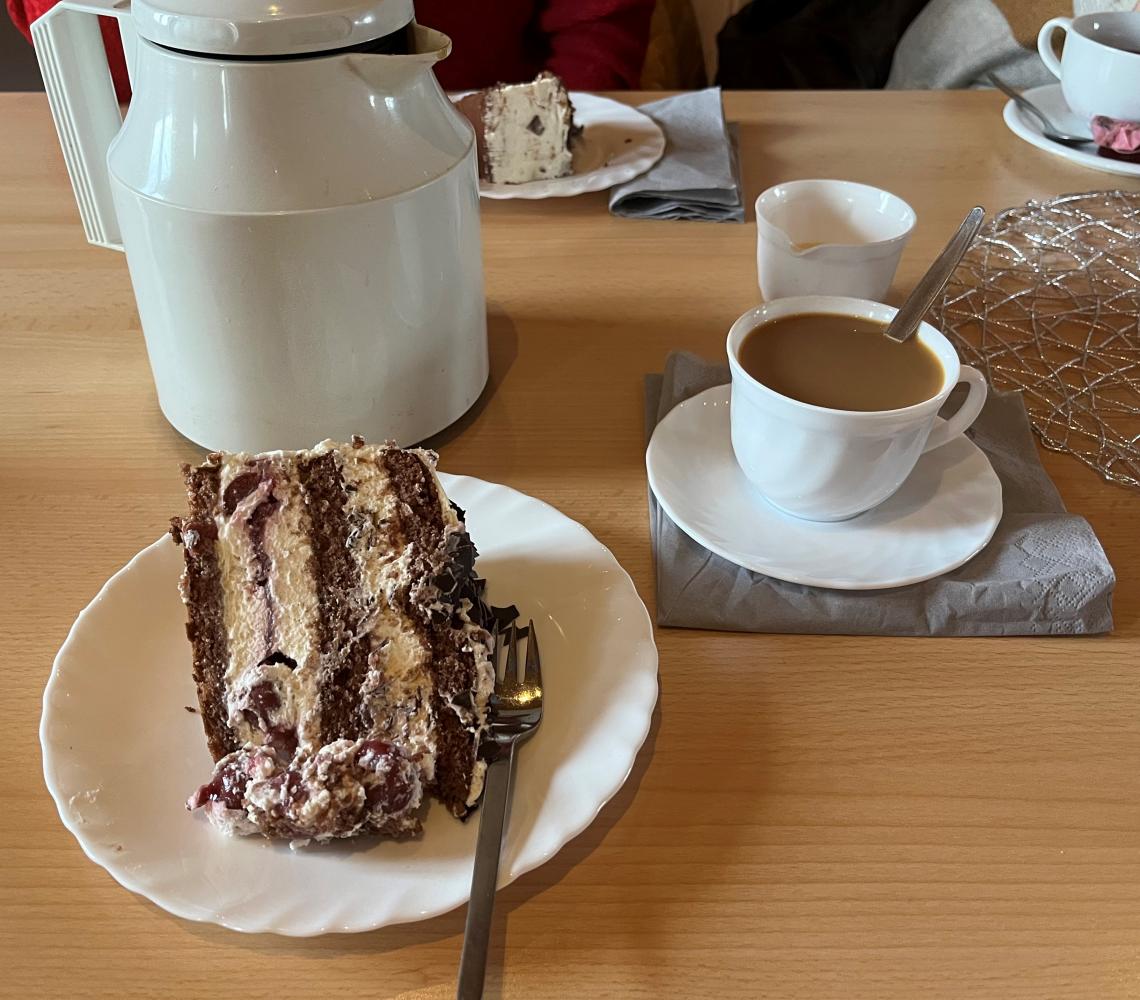 Kaffeeduft und sieben leckere Kuchen und Torten erwarteten uns, allesamt selbstgebacken und seeeehr lecker. Dankeschön für die nette und freundliche Bewirtung.