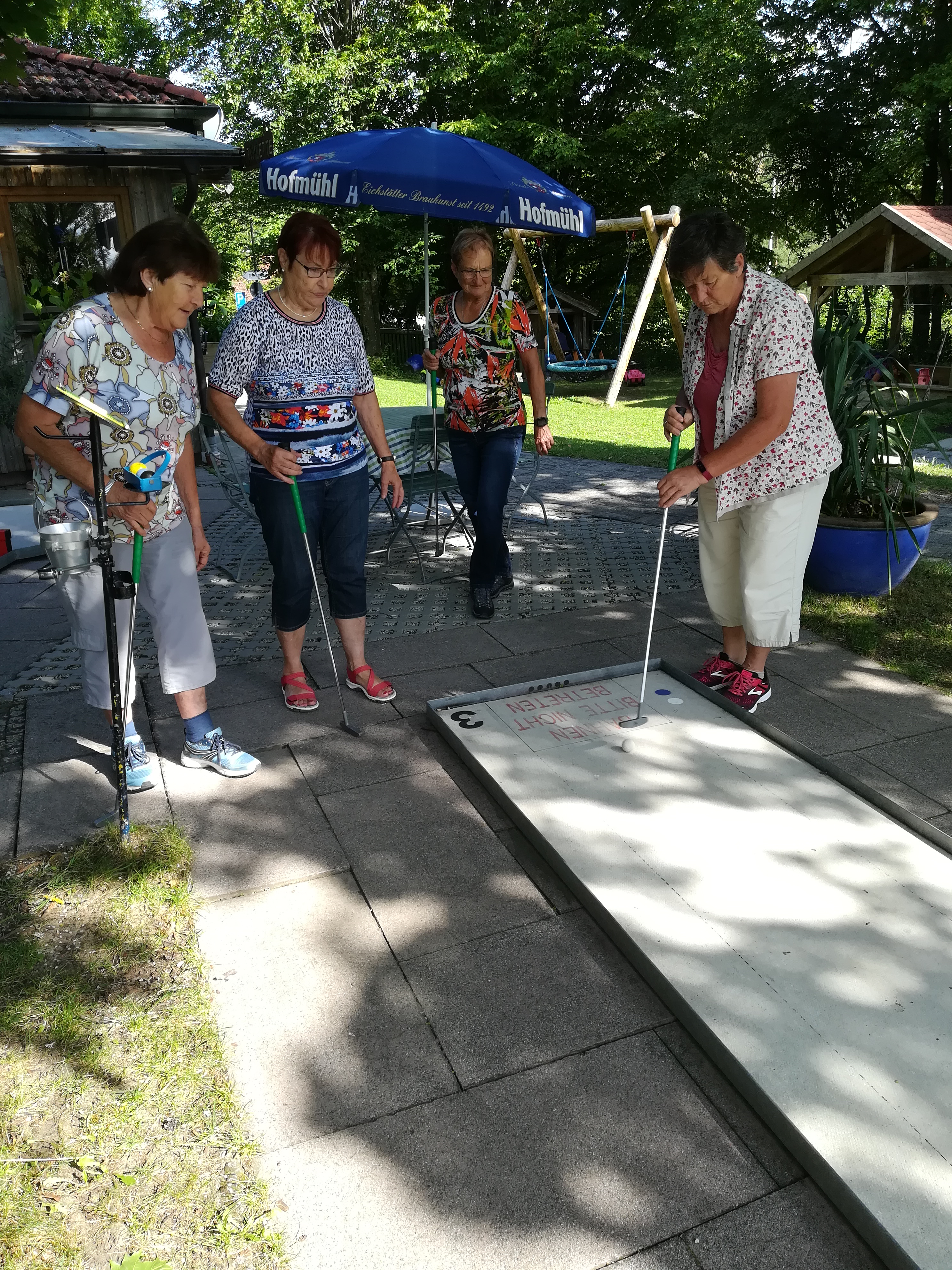 trafen wir uns bei schönstem Wetter. Nach Aufteilung der Gruppen konnten die Spiele beginnen. Als Siegerin wurde schließlich Sonja gefeiert. Zusammen ließen wir uns noch die selbstgebackenen Kuchen schmecken und den Nachmittag fröhlich ausklingen.